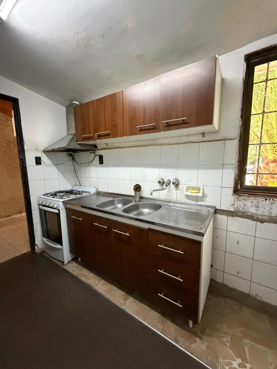 PLANTA BAJA: Cocina con lavandería integrada, living comedor, baño completo con ducha y un dormitorio. Cochera pasante con salida a dos calles, patio embaldosado con churrasquera.