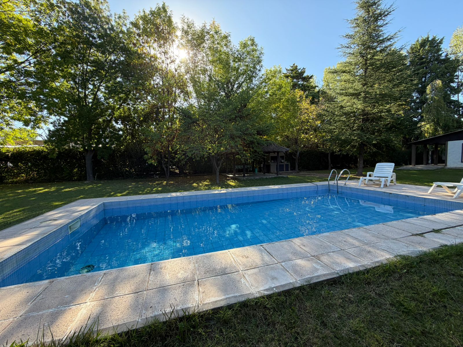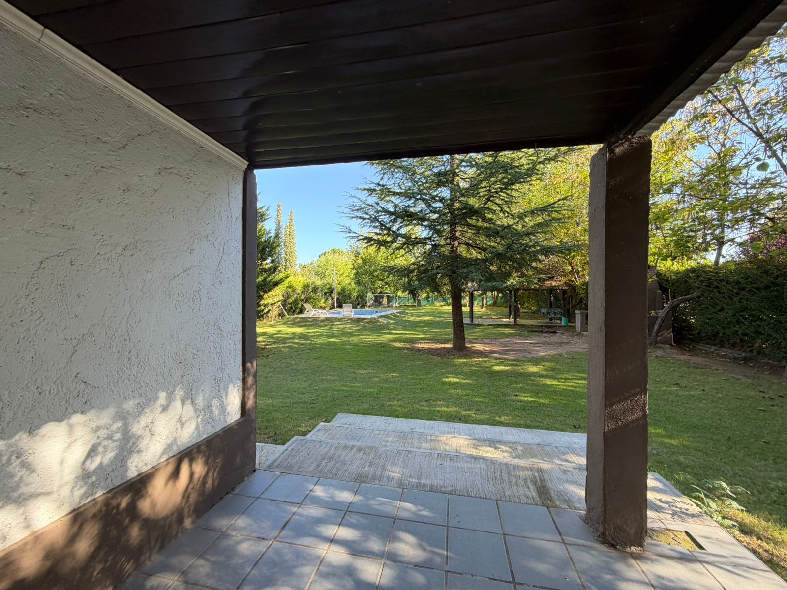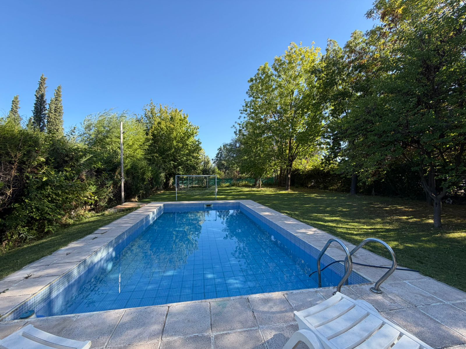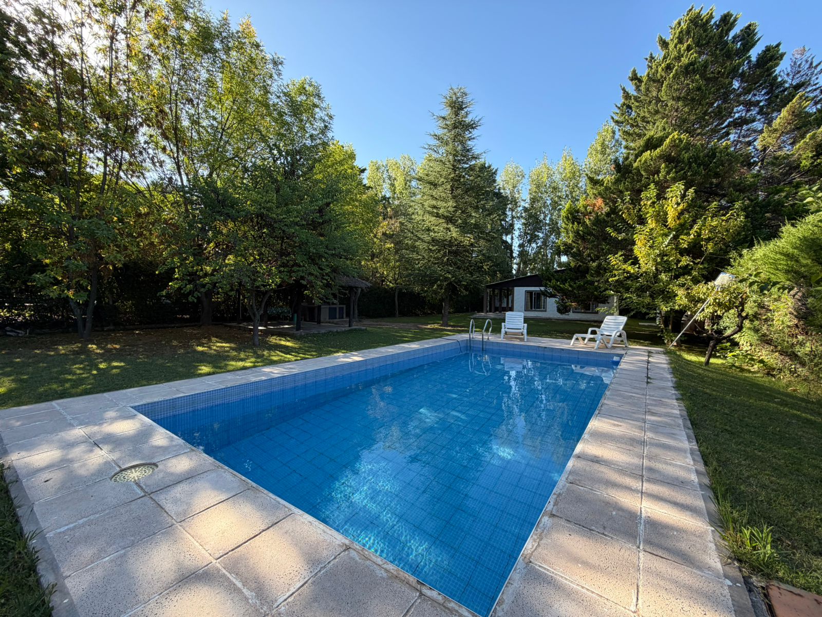 Cabe destacar que el inmueble es de construcción en seco, su piscina cuenta con todo su equipo de filtrado, el cual está automatizado, cancha de fútbol, quincho con churrasquera con instalación eléctrica y agua potable. Posee rejas en todas sus aberturas, con alarma.